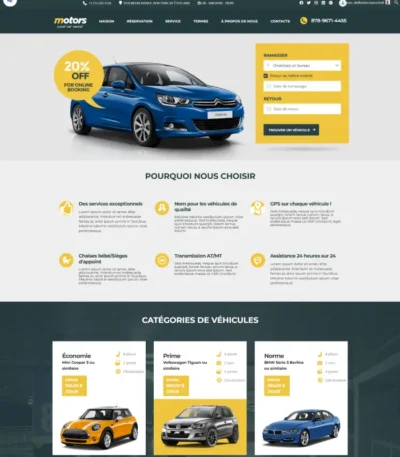 MotorsRental est un site web professionnel pour la location de véhicules, intégrant un système complet de réservation en ligne, des offres attractives et une présentation détaillée des véhicules et services disponibles.