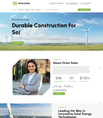 Il s’agit d’un kit de modèles de base pour Entreprise de service en Énergie Solaire, adaptatif pour tous les principaux appareils. C’est un modèle idéal pour une entreprise de vent d'équipement et de servises Énergie Solaire, c'est un moderne et 100 % modifiable.