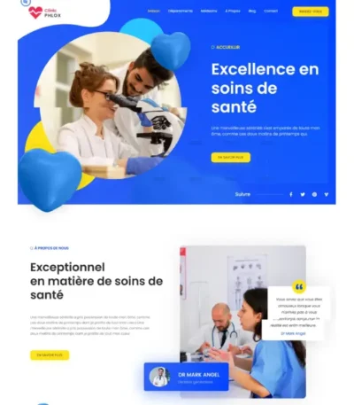 Présenter vos services, votre équipe et faciliter les prises de rendez-vous avec notre magnifique site Web médical et dentaire soigneusement conçu. Ce modèle contient des pages prêtes à l’emploi qui présentent un magnifique blog, un guide des prix, un formulaire de contact, etc. Il a une mise en page 100% réactive, prête pour la rétine et très facile à personnaliser. Ce kit de modèles comprend 13 superbes modèles soigneusement conçus, vous pouvez créer votre site Web d’entreprise d’aspect professionnel en un seul clic.