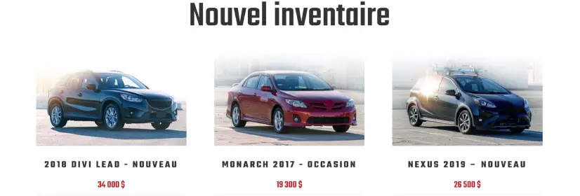 Mais ce n’est pas tout. En tant qu’agent, vous comprendrez l’importance de générer des leads et de stimuler les ventes. C’est pourquoi notre kit est doté de fonctionnalités avancées telles que la présentation détaillée des véhicules, la planification d’essais routiers, des outils de recherche avancés et la possibilité de demander des devis instantanés via un formulaire en ligne.